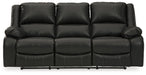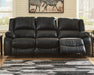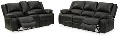 Sleek and streamlined, this power reclining set draws out your leisure time with its bustle back construction and thickly cushioned armrests. The super soft faux leather gets a high-end tweak with jumbo contrast stitching so you don’t have to sacrifice style for comfort. Sink into the comfortably supportive cushions and stretch your evening as long as you can with the handy USB ports to power your devices.