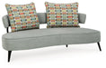 Cool takes a new shape in your living room with this retro sofa and ottoman set. Rounding out your stylish, urban space, this set sports a velvety soft upholstery and sleek, tapered legs. Curl up with comfort, and really turn around your home decor.