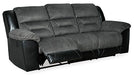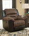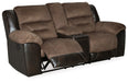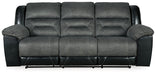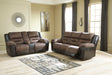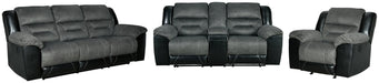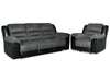 Every day is a good day with this reclining sofa and reclining loveseat with console. Take a load off and forget your worries as you ease back into the luxurious feel of suede-like fabric. Faux leather covers the outside parts for an elevated look. Need more comfort and support for your body? Cue the deep seating and tall back. Contrast jumbo stitching adds an element of style to the cushions.