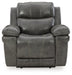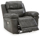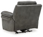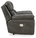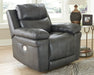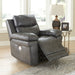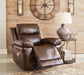 When you curl up in this power recliner with adjustable headrest, you won't want to get up. Its combination leather and faux leather upholstery comes in a neutral brown chocolate hue that pairs up comfortably with most color schemes. This cozy recliner will be your go-to spot for watching TV, reading, or just closing your eyes and drifting off to sleep. Perfectly positioned cushions and overstuffed pillow top arms allow unparalleled relaxation. With a look that turns heads, this recliner has an extended ottoman to enhance comfort, and an adjustable headrest for a primo view of the TV even when you're fully reclined.
