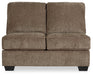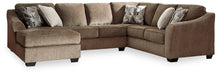 Looking to serve it up family style? Sporting clean, contemporary lines and a highly textural upholstery for a warm, cozy feel, this sectional delights with its city chic aesthetic and earthy appeal. Taking neutral to a new level, the heavy textured chenille upholstery in teak brown is sure to blend beautifully into your scene. Crisp and clean box cushions and sloped, flared arms enhance the inviting feel and modern appeal.