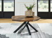 A breath of organic beauty for the contemporary home. This coffee table works well in conversation with your curated furnishings, with an irregular starburst pattern top and black metal base bringing a refined touch to natural stylings.
