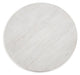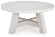 Carefully crafted with farmhouse appeal, this coffee table features braced posts and a thick round tabletop. The off-white finish adds depth and character to its simple silhouette. You won't be able to resist the organic appeal of this versatile piece.