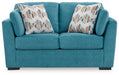 You want your home to reflect your modern, trendy eye for design. This loveseat is here to help. Bold, bright and beautiful, it adds a fashion-forward pop of color to your living room. Velvet-like upholstery and matching bolster pillows keep comfort at top of mind, whether you're lounging around or entertaining guests. How’s that for fresh style and functionality?