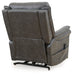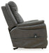 This power lift recliner does the work for you, easing you to your feet from a relaxed sitting position or fully reclined. Irresistibly comfortable and ruggedly handsome, the neutral steel gray shade fits most any color scheme and room decor. It has a heating element in the seat, plus a massage function to ensure total relaxation, so complete comfort is a foregone conclusion. With heavyweight padded faux leather for long-lasting durability, you'll be able to enjoy this recliner for quite a while.