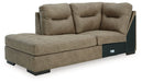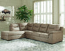 If you love the idea of a luxe look that won't break the bank, make yourself comfortable with this alluring walnut brown sectional. Designed to look like the real thing, it's wrapped in a practical faux leather loaded with natural tonal variation and a soft hand feel. Appealing to a contemporary taste, its jumbo stitching, tufted styling and pillow top armrests are indulgently comfortable, with a streamlined look that tops off the high-end aesthetic made for everyday living.