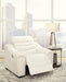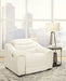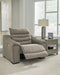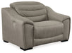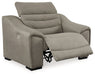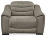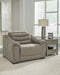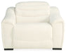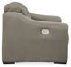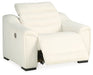 Modern comfort never looked so good. Sporting sloped track arms, wide, generous cushions and bustle-back stitching for high-fashion flair, this power recliner is the ultimate choice in comfortably cool, contemporary style. Indulging with a suede-like faux leather that emulates nubuck leather, the recliner’s family- and pet-friendly upholstery is the stuff dreams are made of. Factor in the added perks of an Easy View™ power adjustable headrest and USB charging, and you’ve got a power recliner that truly caters with style, comfort and convenience.