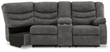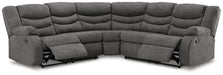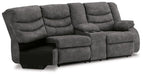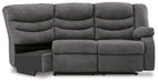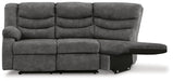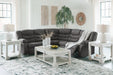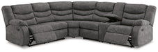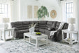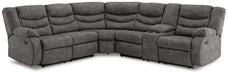 Affordable luxury made easy. An essential for living room lounging, this sectional is a star in social spaces. Its sleek slate gray faux leather is well-suited for mixing and matching with your existing pieces. Pull tab reclining keeps you and your companions covered when it comes to comfort. And this functional piece is equally as fashionable, with design details like a channel-stitched back incorporating subtle visual interest.