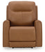 Reserved for him and made for her. This power recliner delivers all the comfort and style you could ask for. Inspired by sports car interiors, the combination leather and faux leather upholstery with jumbo stitching for even more appeal. And the recliner's adjustable headrest, extended ottoman and zero-gravity mechanism put you in the driver's seat.