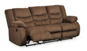 This reclining sofa and loveseat set puts the win in winning. Its waterfall back design and doubly plump pillow top arms team up with soft chenille fabric to go for the goal. Ample seating room makes the comfort possibilities endless. Sit back and relax. You won’t go wrong with this reclining set.