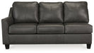 Luxurious lounging, everyday affordability. This sectional prioritizes comfort that suits your modern lifestyle. Its leather match upholstery indulges you in soft seating, with subtle dimension added by natural pebble detailing. Ending in tapered accent legs, this sectional is a chic way to complete your home’s central, contemporary hub for entertainment.