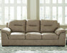 If you love the idea of a luxe look that won't break the bank, make yourself comfortable with this alluring light-hued sofa in a neutral shade of pebble brown. Designed to look like the real thing, it's wrapped in a practical faux leather loaded with natural tonal variation and a soft hand feel. Appealing to a contemporary taste, its jumbo stitching, tufted styling and pillow top armrests are indulgently comfortable, with a streamlined look that tops off the high-end aesthetic made for everyday living.