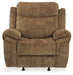 How can you not cuddle up in this decadently plush rocker recliner? Spicing things up in a warm and earthy nutmeg brown, this richly styled recliner is covered in a heavyweight padded velvet upholstery for a sense of luxury. Distinctive elements include wraparound padded armrests for a cool twist.