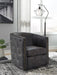 Classic style gets an urban upgrade in this cool accent chair. The barrel back and tufted sides evoke swanky private clubs while the distressed black faux leather keeps it current.
