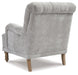 Give your classic style a modern edge with this cool accent chair. The diamond tufted back and Dove gray color combine to create an elevated piece that pays homage to time-honored design while remaining entirely current.