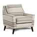 Delicate Aztec-inspired patterns are woven throughout the fabric upholstery of this chair to create a muted tone masterpiece. Sloping track arms contribute a modern feel that is reinforced by the tapered dark-stained wood legs, flared outward to compliment the dynamic style. The myriad of colored geometric designs increase the possibilities of integration, although this piece can certainly stand alone.