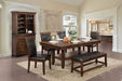 Parson style chairs and a plank style table top blend to create a transitional design with rustic appeal. The open bottom shelf provides an interesting visual while providing useful storage space. The flared chairs are upholstered in sleek leatherette upholstery to combine trending style with modern comfort.