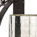 Love a rustically refined sense of style? You’re sure to be hooked on this one-of-a-kind wall sconce. Luminous mercury glass hurricane is encircled by hammered metal rings and secured by a strapping leather strap and metal wall brace.