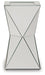Dynamic yet sophisticated, this accent table is sure to make a statement. The geometric design constructed of beveled mirror is unique and contemporary. Metallic beads add a glitzy touch, making this accent table the perfect small addition to elevate any room.
