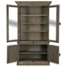 - Features 2 Wood Framed Tempered Glass Doors That Open To Reveal 3 Adjustable Wood Framed Glass Shelves