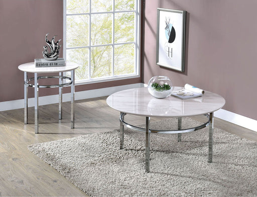 Furniture of AmericaIn stockFor the ultra modern we have designed this clean and remarkable end table. Glorious round faux marble provides the table top surface, while a chrom...