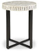 Understatedly cool in its construction, this accent table adds a subtle sense of edginess to your modern decor. Its bone inlay in cream and black creates visual intrigue on the top, balanced out by the sleekly styled black base.