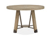 Industrial style gets a light and airy vibe with the soft organic color palette of the Ainsley Dining Collection, featuring a tactile Cerused Khaki finish with a subtle gray wash on exotic, elegant Acacia Solids and Veneers. Adding character to this collection are exquisite book-matched veneers in an X-motif on case fronts, metal ferrules on the base of the round dining table and metal brackets on the edges of the rectangular Parson’s leg Dining Table and the Parson’s Leg Bench, all in an Industrial Bronze finish. The Display Cabinet combines the book-matched pattern at the bottom of the two doors with glass on the top of each door. Chair choices in the collection include a modified Windsor chair with an upholstered seat and upholstered host and side chairs. Create an uplifting setting in soothing natural colors and textures for memorable meals with the Ainsley Collection.
