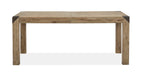 Industrial style gets a light and airy vibe with the soft organic color palette of the Ainsley Dining Collection, featuring a tactile Cerused Khaki finish with a subtle gray wash on exotic, elegant Acacia Solids and Veneers. Adding character to this collection are exquisite book-matched veneers in an X-motif on case fronts, metal ferrules on the base of the round dining table and metal brackets on the edges of the rectangular Parson’s leg Dining Table and the Parson’s Leg Bench, all in an Industrial Bronze finish. The Display Cabinet combines the book-matched pattern at the bottom of the two doors with glass on the top of each door. Chair choices in the collection include a modified Windsor chair with an upholstered seat and upholstered host and side chairs. Create an uplifting setting in soothing natural colors and textures for memorable meals with the Ainsley Collection.