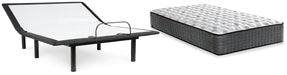 Enjoy endless possibilities for restful sleep with this mattress and adjustable base set. The firm mattress, which features hyper-cool technology, offers the best of both worlds: a hybrid innerspring mattress with the pressure relief of cooling gel-infused foam, coupled with body contouring pocketed coils for superior support. With the touch of a button, the power base smoothly raises your upper body to relieve pressure points, sit up in bed or sleep in a partially inclined position (helpful for people who snore or experience acid reflux). Convenient USB charging is available for powering up your devices.