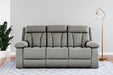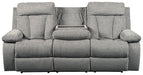 Your to-do list is complete, now it’s time for ultimate relaxation. This rocker recliner, double reclining sofa and loveseat set is plush in all the right places, and will support you for longer than you can binge watch your favorite TV show. The neutral upholstery is ready for patterned throw pillows and some of your time. The sofa’s middle seat back drops down into a convenient table top with cup holders, the perfect resting spot for tablets and magazines. In addition, the loveseat has lift-top storage and 2 cup holders while the rocker recliner’s gentle motion offers endless relaxation.