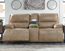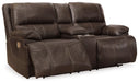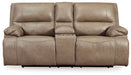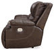 Life is so much better when you can enjoy the pleasure of real leather—at a price to put you at ease. That’s exactly what you get with this power reclining loveseat with adjustable headrest. Thanks to combination leather and faux leather upholstery, you've got a reclining loveseat that feels like a million bucks but won’t break the bank. Tailored to those with an eye for contemporary design, this power reclining loveseat is dressed to impress with an upscale matte finish, clean-lined divided back tufting, distinctive jumbo stitching and chic pillow top armrests. Perhaps best of all: Easy View™ power adjustable headrests let you recline back and still have a primo view of the TV.