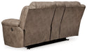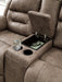 For those that love the cool look of leather but long for the warm feel of fabric, this power reclining loveseat delivers both with ease. Its high-performance padded faux leather is remarkably durable and easy to clean, just the thing for family spaces. When it’s time to relax, the one-touch power control puts the perfect position at your fingertips. Channel-stitched back cushions provide indulgent lumbar support for maximum seating comfort—not to mention fashion-forward flair.