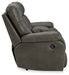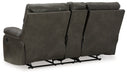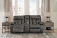 This reclining loveseat with console lets you share the most popular seat in the house with anyone you choose. Made of quality faux leather, its look and feel are rich yet affordable. Fashion-forward jumbo stitching adds the finishing touch to a handsome piece that is just waiting for some of your time.