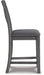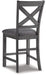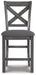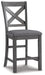 Going gray in the best possible way. This counter height bar stool wows with an utterly on-trend smoky gray finish and X-back styling. Its softly cushioned seat with gray textured upholstery and nailhead trim will have you lingering a little longer at mealtime. Just a touch of distressing helps it fit right in with your modern farmhouse decor.