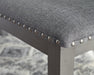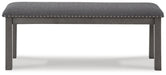 View full detailsGoing gray in the best possible way. This dining bench wows with an utterly on-trend smoky gray finish. Its softly cushioned seat with gray texture...