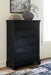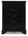 The traditional design of this chest of drawers has a timeless look that adds visual appeal to your bedroom, while its functionalism is equally impressive. There is lots of room for clothes and other essentials in five drawers with a stylishly subtle black finish. Creating a beautiful focal point, the drawer fronts are enhanced by round metal knobs in a dark bronze tone for a casual aesthetic.