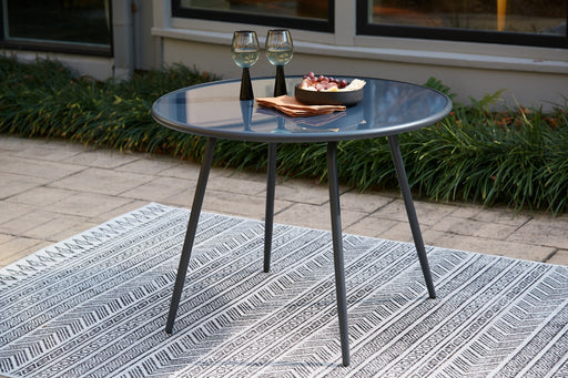 Ashley Furniture3D AvailableThis round outdoor table sets the standard for alfresco dining. Its powder coated steel frame and resin tabletop are ready to withstand the element...