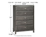 Contemporary style shapes up beautifully with designer elements evident from every angle in this bedroom set. Crafted with quality, contoured surfaces disguise ample storage options. Sporting a distinctive weathered gray finish, this set is the epitome of casual elegance.