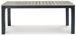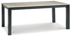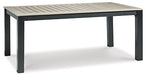 On-trend stylings take to the outdoors with this dining package. Its two-tone look in driftwood and black has a laid-back luxe appeal. High design meets durability with this outdoor set’s weather-resistant HDPE construction—a stunning display of form and function.