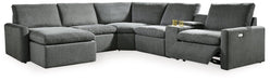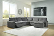 Fit for the comfort seeker in your household, this power sectional has that casually cool sensibility you love. Pillow top cushions with a feather-fiber blend are simply sumptuous. Chic and subtle chenille microfiber upholstery weaves in so much style.