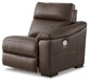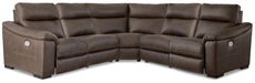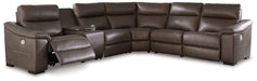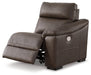 Easy on the eyes and incredibly comfortable, this high-end power reclining sectional will upgrade the look and feel of your living room. Its automotive-inspired leather and faux leather keep luxury right on budget. The modular design allows pieces to be grouped together in a variety of ways. No matter how it's arranged, this sectional is just the right touch for reclining and relaxing in style.