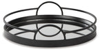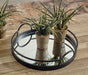 Crafted from metal, this mirrored glass tray features raised railings along the circumference to ensure the safety of your favorite keepsakes. Versatile and visually elevating, this is a great choice for decor spaces with a contemporary feel and design.