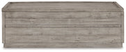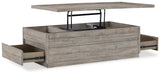 Balancing chic flair with a relaxed sensibility, this coffee table strikes just the right tone for rustic sophistication. Beautifully clean lines are subtly enhanced with relaxed distressing and saw marks for authentic barn wood character. Featuring a picture framed top, lift top design and lower drawers on two sides give it just enough flair.