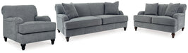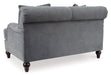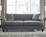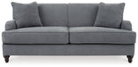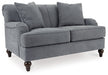 With its graceful curves and rich elements, this sofa and loveseat set in slate blue embraces a sense of tradition in a way that feels fresh and new. A favorite among romantics, the Charles of London arms and rollback profile are beauty to behold. Crisp and clean 2-over-2 cushion styling and monochromatic throw pillows prove that less can be more.