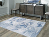 Marvel at the modern stylings of this rug. Showcasing a tantalizing texture with faux rabbit fur, this abstract piece elevates your decor with its ethereal aura in shades of cream, gray and blue.
