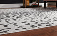 Go wild with this indoor/outdoor animal print rug. Thanks to its black, white and gray color palette, the area rug plays nicely with other hues. Place it on top of carpet or a natural-tone sisal rug for a layered look.
