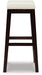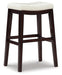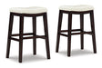 Taking a timeless approach to casual stylings, the Lemante bar stool is a charming addition to your dining room or kitchenette. Brown faux leather on the cushioned saddle seat keeps things comfortably chic, while nailhead trim invites a subtle touch of traditional glamour.