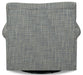 Sporting a tantalizing tweed weave fabric in such a soothing blue hue, this swivel glider accent chair gives the classic roll arm chair a modern twist. Smooth, 360-degree swivel caters to your comfort—and your viewing pleasure. Gentle glider feature is designed to rock your cares away.