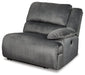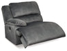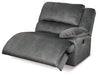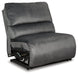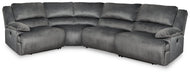Large-scale comfort is yours with this reclining power sectional. With supremely padded back, seat and arm cushions, it's the hero for ultimate relaxation. Microfiber upholstery is welcoming, soft and luxuriously covers the extra-wide seats. Recline back and kick up your feet to bolster your comfort level even more.
