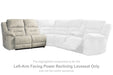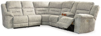 With its sumptuous comfort and designer style, no wonder this power reclining sectional is such a crowd pleaser. Looking for a new twist on neutrals? Then you’re sure to love how this power sectional’s stone-tone padded velvet fabric is delightfully different, yet sure to blend beautifully with countless color schemes. Rest assured, the one-touch power control with adjustable positions includes an Easy View™ adjustable headrest that lets you lay back and still have a primo view of the TV. Zero-draw USB plug-ins at your fingertips keep you powered up as you chill out.